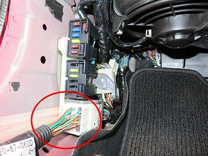 運転席の足元からドアへと向かうハーネス内の配線